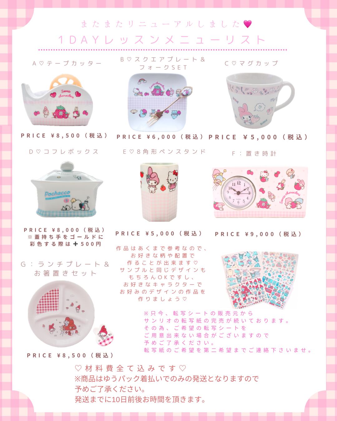 ※現在、転写紙販売元でのサンリオライセンス転写紙の完売が続いております。