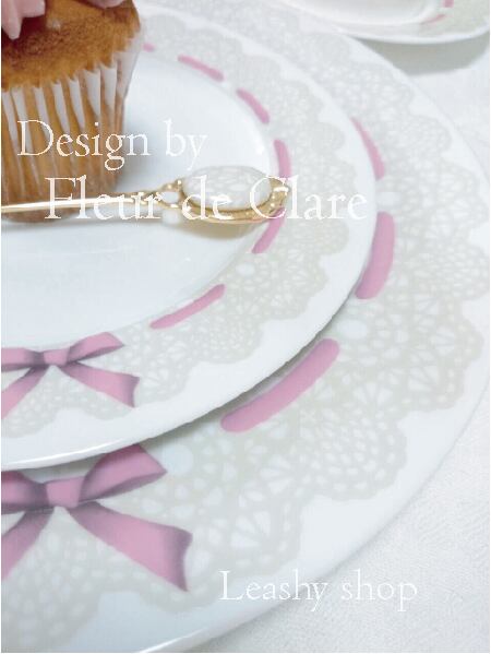 Mariage転写紙 白磁用by Fleur de Clare グレージュ&ピンクリボン